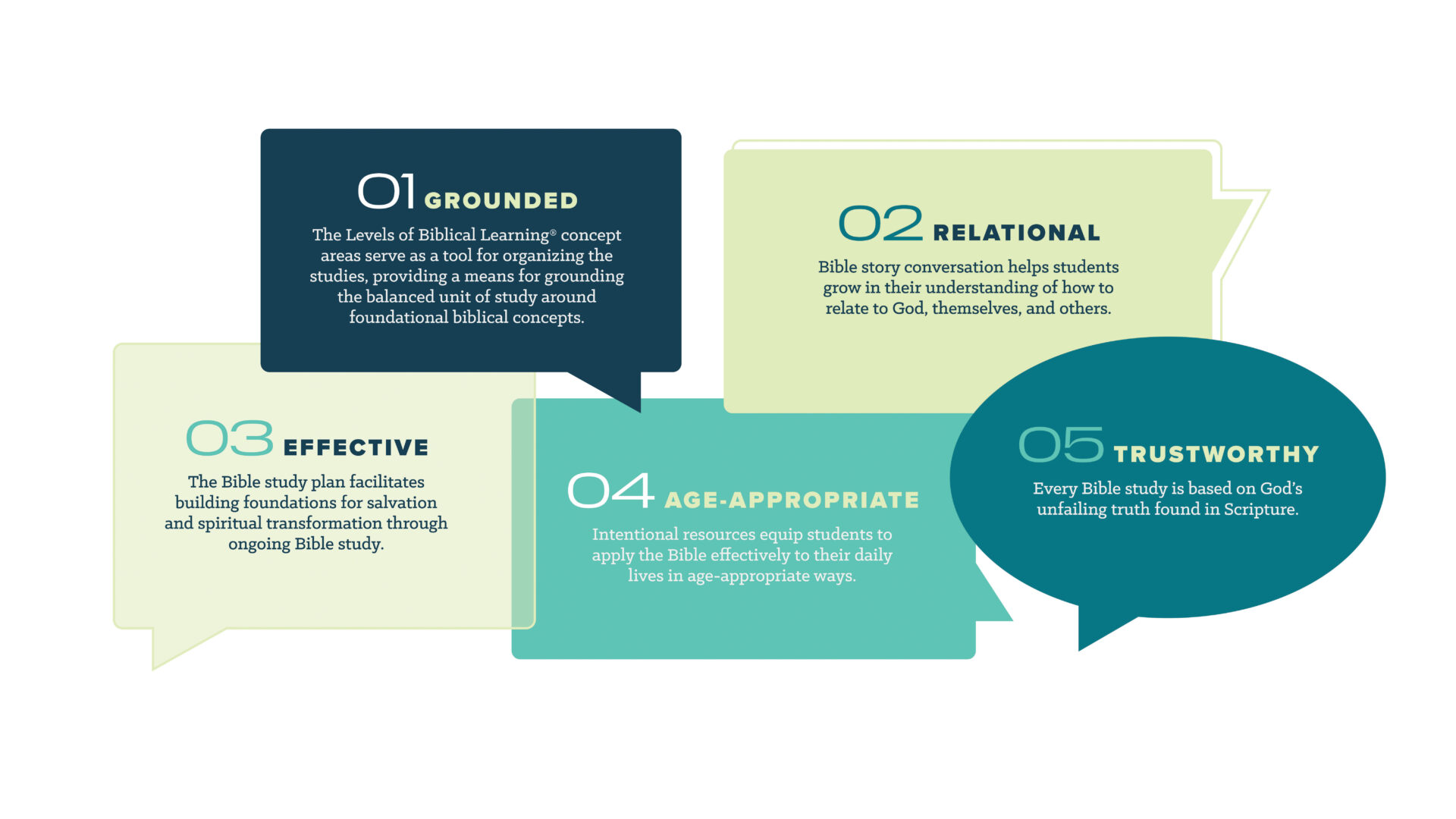 Each stage of life brings its own joys, needs, and challenges. That’s why Bible Studies for Life is based on the Levels of Biblical Learning, a study framework that helps babies through senior adults study essential biblical concepts at an age-appropriate depth and learning style. These concepts include: