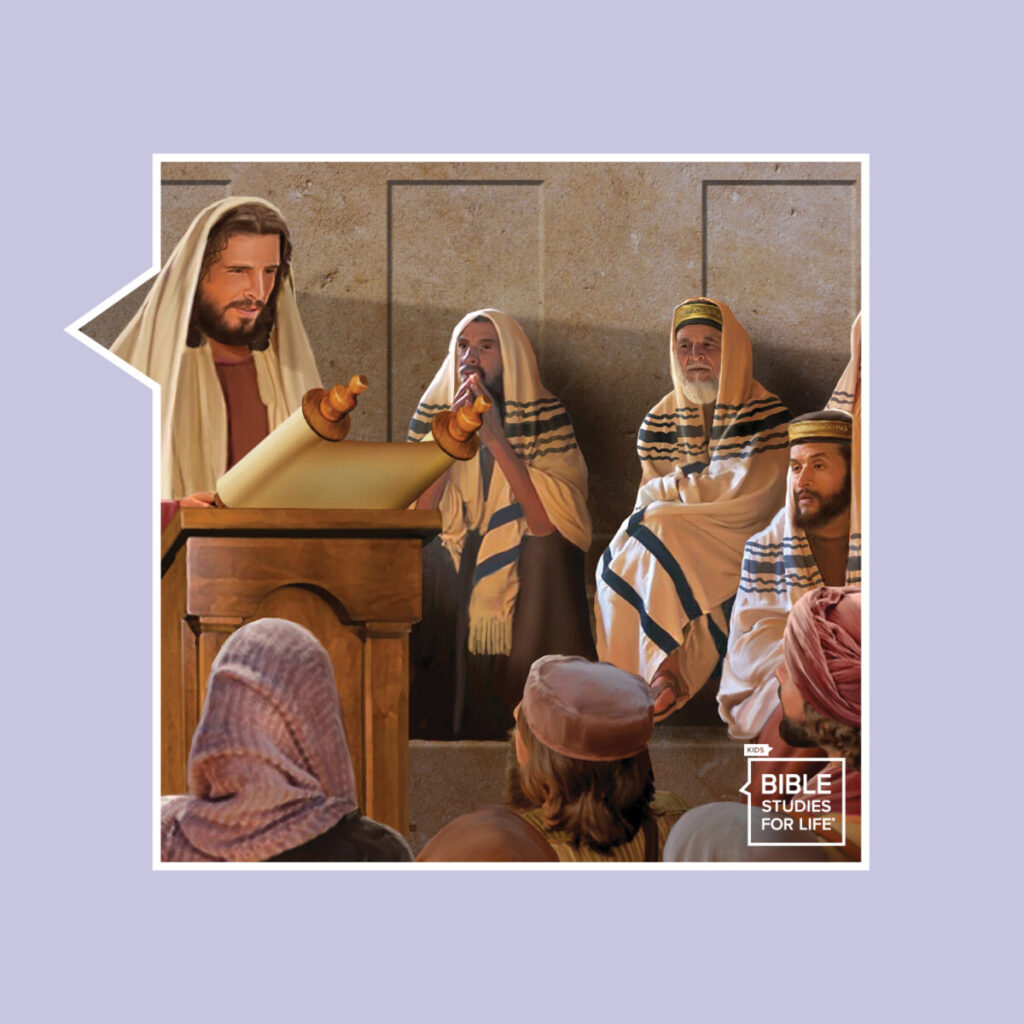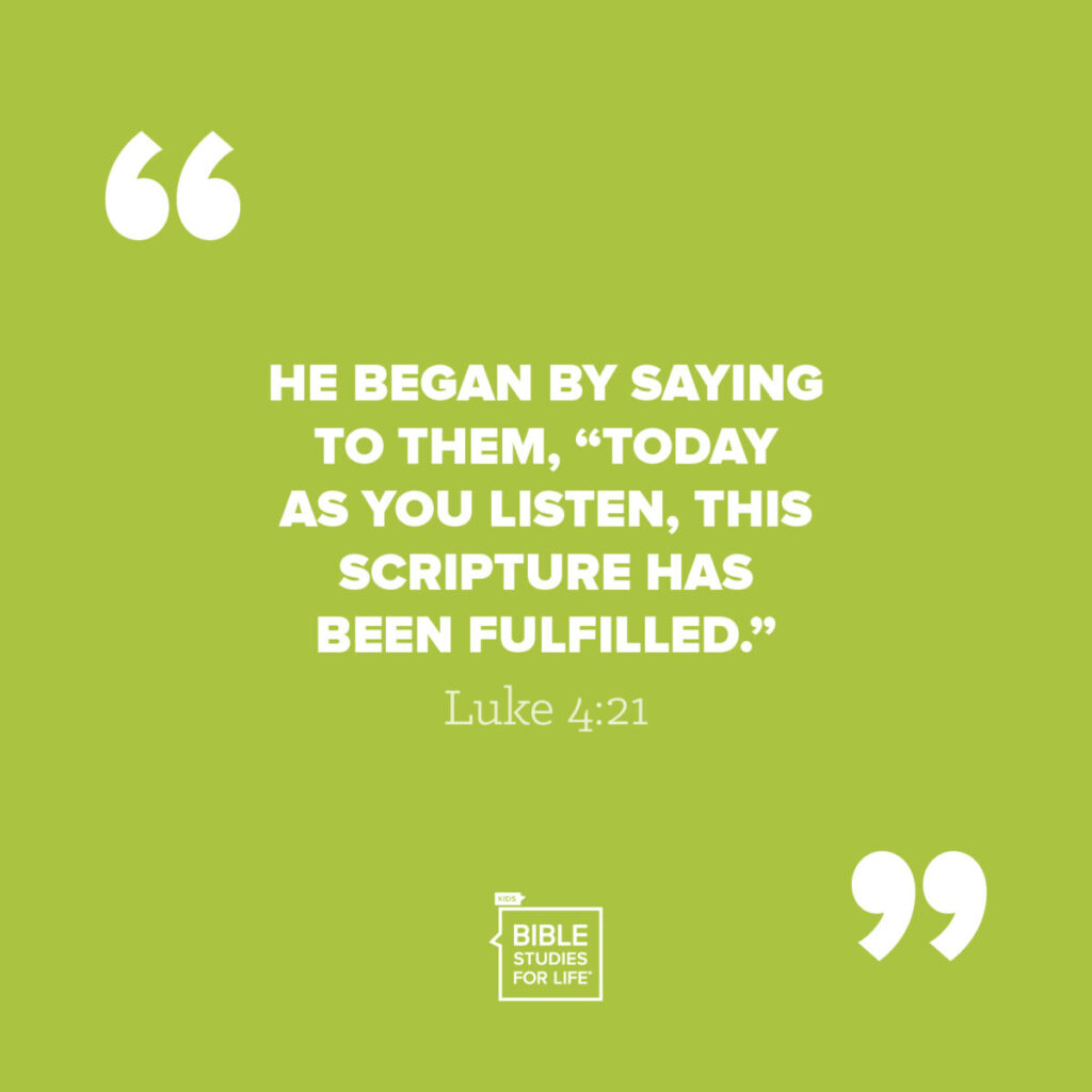 The Bible story teaches that the Bible teaches about Jesus. In the synagogue, Jesus read a Scripture from Isaiah. He told the people that the Scripture was about Him.