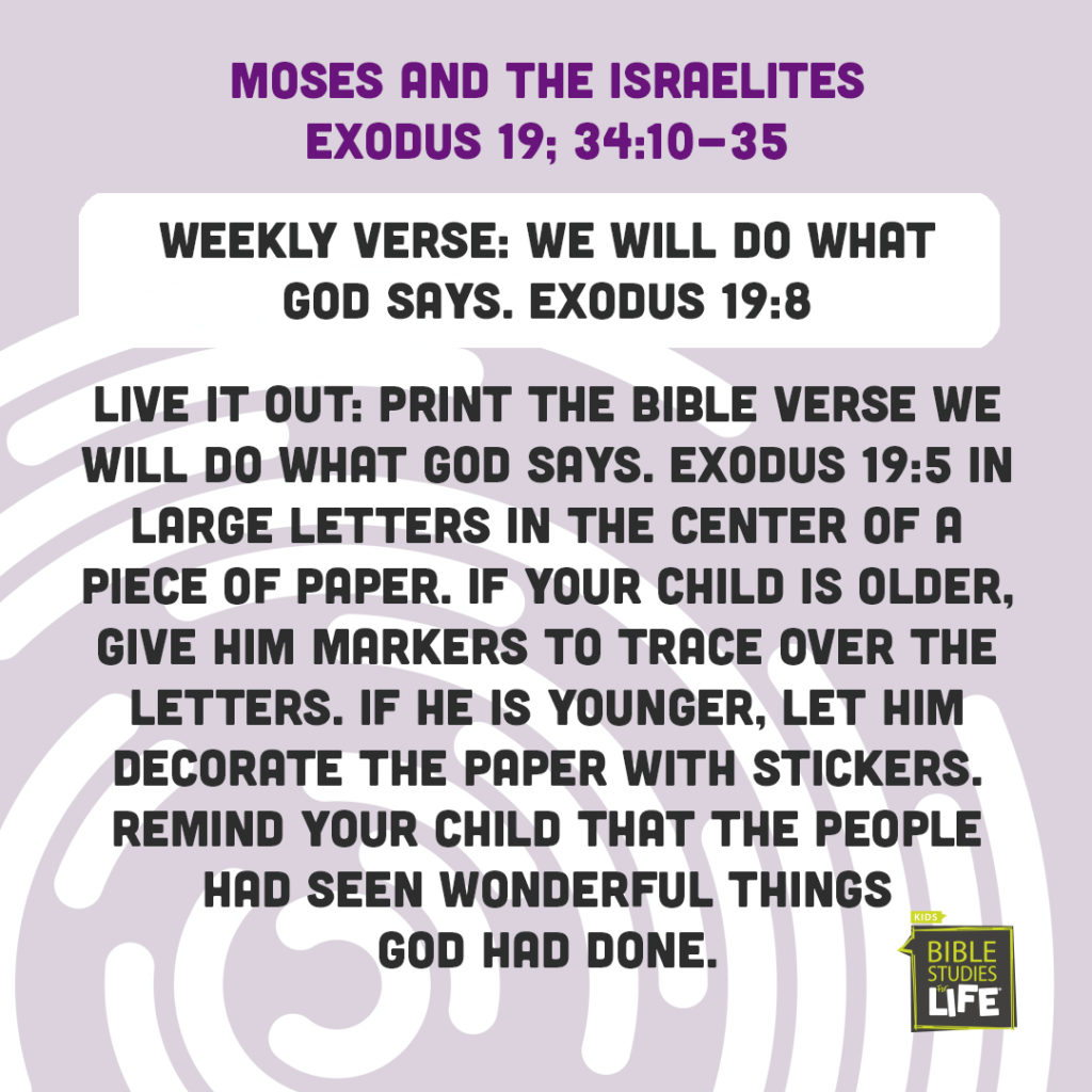 Preschool Social Media Week of October 20 Parents, today your child learned that God can do all things. Moses told the Israelites to get ready because God would talk to them and show them great things. The people got ready to listen!