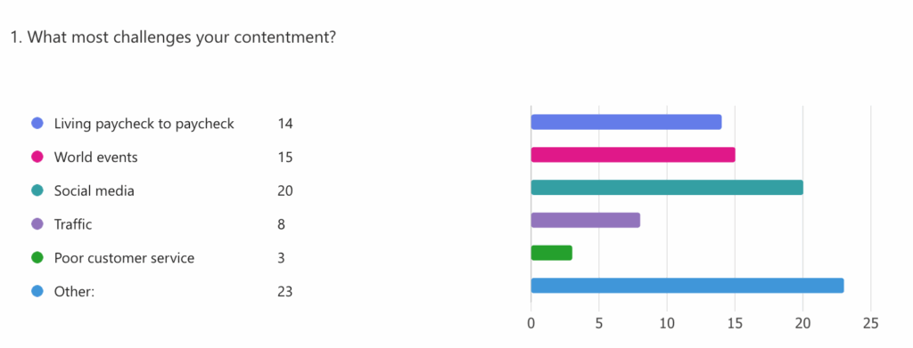 As cliché as it might sound, the word of the Lord. When I read it daily, I am content. If I miss a day in his word, I’m left empty.